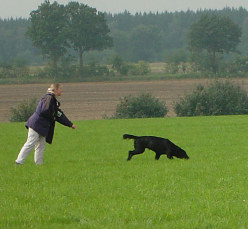 Kira hat gefunden und kehrt mit dem Dummy zurück