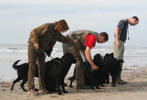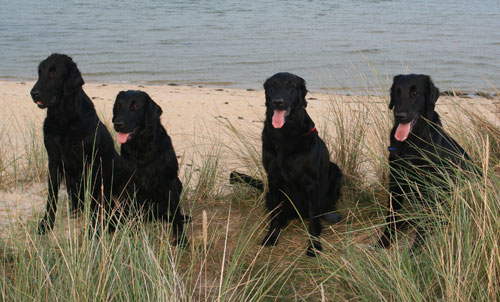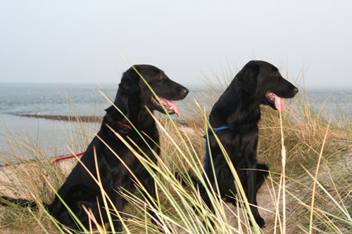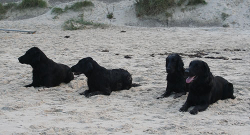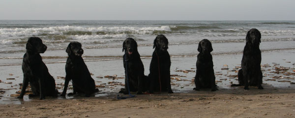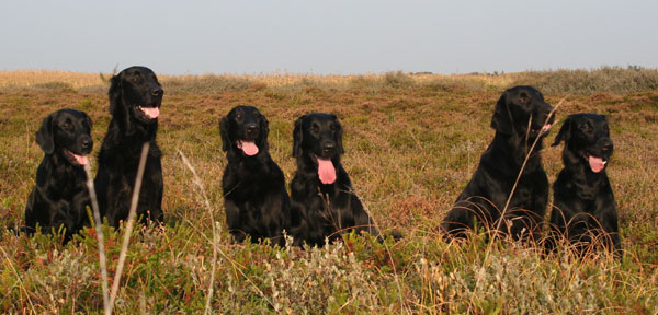 Arwen, Mephisto, Kira, Caitlin, Baghira und Kayleigh in der Heide auf Römö