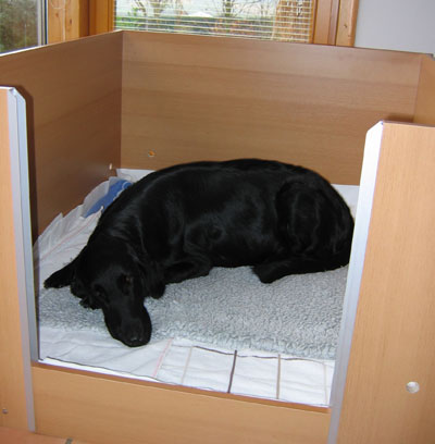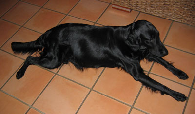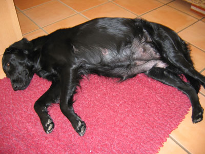 03.12.2004: Mittlerweile bervorzugt Kira eine gestreckte Haltung beim Liegen.