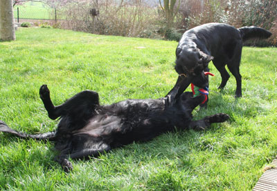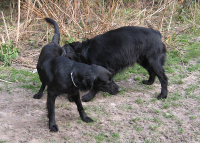 24.03.2007: Der 60. Trächtigkeitstag. Kira wartet..., Caitlin passt auf sie auf.