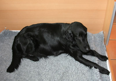 14. und 15.03.2007: Kira am 50. und 51. Trächtigkeitstag. Zu Hause genießt sie die Gemütlichkeit und "pflegt" ihren runden Bauch - unterwegs ist sie noch fast die Alte.