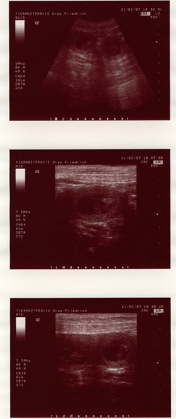 22.01.2007: Kira an ihrem 30. Trächtigkeitstag. Obwohl schon fast die Hälfte der Zeit vorbei ist, sieht man so gut wie noch nichts - noch!!!
