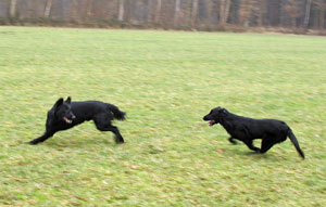 Wir haben uns nun endlich für den Deckrüden unseres C-Wurfs entschieden: Nachdem wir ihn heute gemeinsam mit Caitlin besucht haben, waren wir schnell sicher, dass er der richtige Vater für den C-Wurf sein wird. Caitlin und Dieks hatten heute die Gelegenheit sich vorab schon einmal kennen zu lernen und tobten beim gemeinsamen Spaziergang ausgiebig über die Felder. Caitlin zeigte sich zu Beginn seinen Annäherungsversuchen sehr abweisend, doch taute zusehends auf und begann das gemeinsame Toben zu genießen. Nun heißt es warten auf Caitlins nächste Läufigkeit, die planmäßig Ende Februar beginnen müsste. Doch was heißt in der Natur schon planmäßig. Wir werden sehen... |